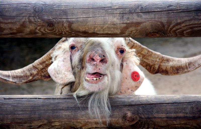 Keywords: farm goat animal mammal domestic livestock countryside fence enclosure horn horned