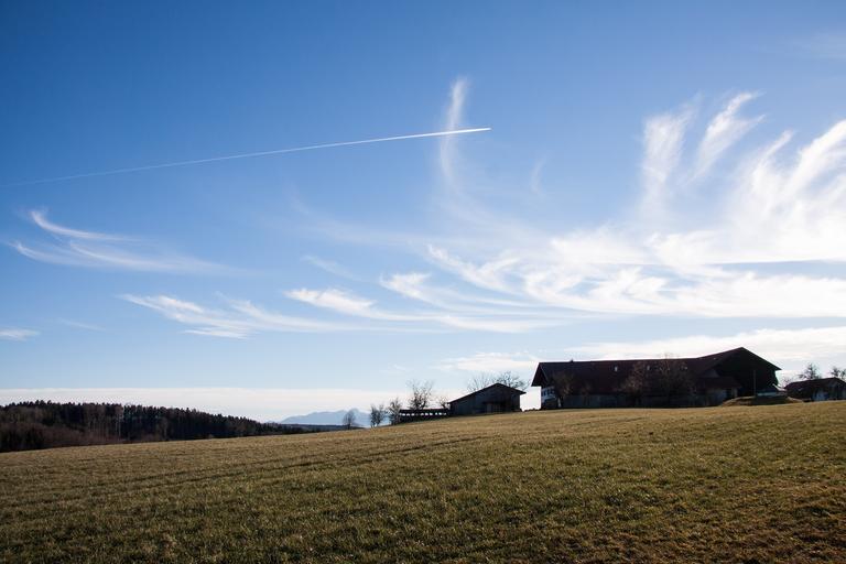 | Keywords: farm homestead hair dryer landscape mountains alpine upper bavaria spring trees blue grey haze distant view sky nature forest clouds föhn clouds arable field agriculture evening light cirrus clouds cloud clear sunny beautiful cirrus federwolke |