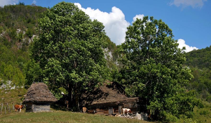 Keywords: farm landscape natural cows trees clouds sky mountain hill nature rural