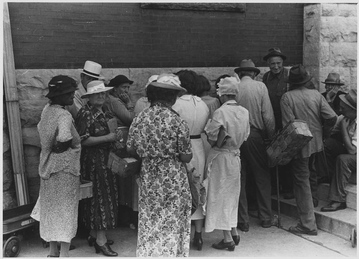 | Keywords: Farm Security Administration, Outside relief station in Urbana, Ohio. Photo by Ben Shahn - NARA - 196516.tif Scope and content General notes 196516 Local identifier Roosevelt Franklin D Franklin Delano 1882-1945 Franklin D Roosevelt Library NLFDR 4079 Albany Post Road Hyde Park NY 12538-1999 ca 08/1938 Record group Collection FDR-PHOCO Franklin D Roosevelt Library Public Domain Photographs 1882 - 1962 Record group ARC 1184 Franklin D Roosevelt Library Public Domain Photographs compiled 1882 - 1962 Series ARC 195301 File unit File unit ARC Variant control numbers NAIL Control Number NLR-PHOCO-A-71147 yes Other versions NARA-cooperation PD-USGov Farm Security Administration |