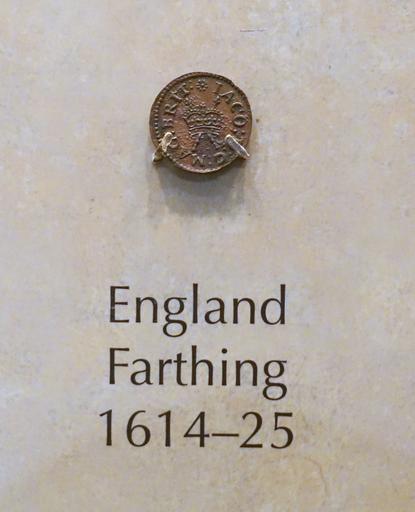 Keywords: Farthing, England, 1614-1625 - National Museum of American History - DSC00171.jpg en Exhibit in the National Museum of American History Washington DC USA Photography was permitted in the museum without restriction 2015-03-27 11 26 16 own Daderot other versions cc-zero Coins in the National Museum of American History Farthing British coin |