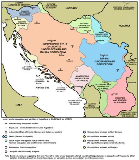 | Keywords: Fascist occupation of yugoslavia.png en Axis / Fascist occupation and partition of Yugoslavia in World War II as of 1941 sh Fašistička okupacija i rasparčavanje Jugoslavije u Drugom svetskom ratu 1941 godine own PANONIAN <gallery> File Axis occupation of Yugoslavia 1941-43 png en File Occupation de la Yougoslavie par l'Axe 1941-43 svg fr File Fascist occupation of yugoslavia-sr png sr File Axis occupation of Yugoslavia 1943-44 png en File Axis occupation of Yugoslavia 1941-43 legend png en File Axis occupation of Yugoslavia 1941-43 png en File Axis occupation of Yugoslavia 1943-44 png en </gallery> self-made map by user PANONIAN References Istorijski atlas Geokarta Beograd 1999 Školski istorijski atlas Zavod za izdavanje udžbenika SR Srbije Beograd 1970 Povijesni atlas Učila - Zagreb Zagreb 1971 Denis Šehić - Demir Šehić Istorijski atlas sveta Beograd 2007 The Times History of Europe Times Books London 2002 Richard Overy The Times History of the 20th Century Times Books London 2004 The Times Atlas svjetske povijesti Cankarjeva založba Ljubljana - Zagreb 1986 Tim Džuda Srbi - istorija mit i razaranje Jugoslavije Beograd 2003 Džon R Lempi Jugoslavija kao istorija Beograd 2004 Fransisko Veiga Balkanska zamka 1804-2001 Beograd 2003 Dr Tomislav Bogavac Nestajanje Srba Niš 1994 Valter Manošek Holokaust u Srbiji Beograd 2007 http //www terra es/personal7/jqvaraderey/194145fc gif http //www svetskirat net/slike/razbijanje/zazbijanje_jugoslavije_1941 jpg http //www marxists org/subject/yugoslavia/images/maps/1941-dismemberment jpg http //www ushmm org/lcmedia/map/lc/image/yug71020 gif http //www srpska-mreza com/MAPS/Yugoslavia/YU-Nazi-division jpg http //www cartoko com/content/wp-content/uploads/2010/05/Yugoslavia_1992_p038_CtryStudy jpg http //www arhivyu gov rs/Data/Images/06_karta_b jpg http //terkepek adatbank transindex ro/kepek/netre/211 gif Maps of Yugoslavia during World War II Axis occupation of Yu12 Maps of Serbia during World War II Axis occupation of Yu12 Maps of Montenegro during World War II Axis occupation of Yu12 Maps of the Independent State of Croatia Axis occupation of Yu12 Maps of World War II in Slovenia Axis occupation of Yu12 Maps of the history of Banat Axis occupation of Yu12 Banat 1941-1944 Axis occupation of Yu12 |