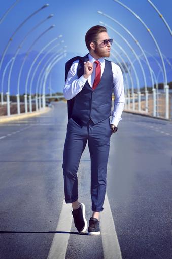 Keywords: fashion male beautiful m car street road model innovator suit tie walk everyday young shirt