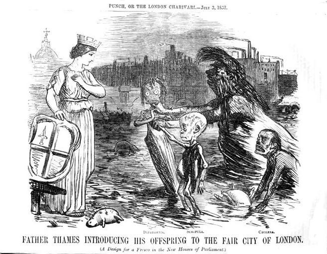 | Keywords: Father Thames introducing his offspring to the fair city of London.jpg Artwork Creator John Leech en Father Thames Introducing His Offspring to the Fair City of London A Design for a Fresco in the New Houses of Parliament Punch at the time of the Great Stink The River Thames introduces his children “ diphtheria scrofula and cholera “ to the city of London showing some understanding that the river was a danger to health fr La Tamise montre ses enfants diphtĂ©rie Ă©crouelles et cholĂ©ra Ă la ville de Londres Ă l'Ă©poque de la Grande Puanteur 1858-07-03 Engraving accession number object history credit line http //punch photoshelter com/gallery-image/John-Leech-Cartoons/G0000Cba0BhAM_Ks/I0000sNjL8e0I2Ms John Leech Cartoons from Punch magazine retrieved 9 May 2013 Punch 35 5 1858 PD-old-100-1923 1864 1858 cartoons 1858 in London Allegories of river Thames Disasters in London Infectious diseases and disorders John Leech Personifications of towns Punch magazine cartoons Scrofula Water supply in London Water pollution in London |