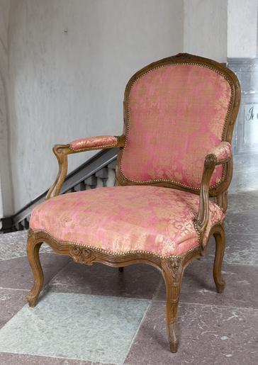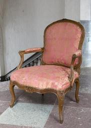 Keywords: Fåtölj - Skoklosters slott - 103909.tif LSH artwork H Amand möbelsnickare sv Svängda ben med käl och bandomlindade vulstknippen som direkt övergår i sargen på samma sätt dekorerad ram till stoppad konturerad rygg Mitt på sargens framsida och på ryggens överstycke skulpterade rosor och rocailler <br/>Utåtsvängda armstöd med stoppning Sits och rygg samt armstödens stoppning klädda med rött-gulmönstrat fibertyg bomull och obearbetad fiber av manillahampa <br/>Klädseln spikad med mässingstännlikor <br/>Omkring 1700-talets mitt <br/>Tygklädseln från ca 1840 <br/>Stämplade på ena ryggstolpens baksida ME H AMAND menusier ebeniste Paris <br/>Märkta <br/>1775 1 På sargens bakre insida J med blyerts <br/>1775 2 På sargens främre insida I samt oläslig skrift med blyerts på vänstra och högra insidan xe <br/>1775 3 Märkt s 1775 2 men Ret på vänstra insidan <br/>1775 4 På sargens främre insida I på dess vänstra insida + med blyerts På sidornas insida inristat romb <br/>1775 5 På sargens främre insida I med blyerts <br/>1775 6 På sargens främre insida x med svart färg tre ggr På sidornas insida 3 med blyerts På bakre insidan L original caption Fåtölj<br/> Nyckelord Föremålsbild Stol ca 1750 size mm 760 700 1020 SKO M E place of origin original filename sm_dig11826 23029 inventory number SKO 1775 103909 CC-BY-SA Jenny Bergensten <gallery caption Different images of same object > File Undersidan av stol - Skoklosters slott - 103893 tif File Fåtölj 1750 cirka - Skoklosters slott - 103912 tif File Länstol 1750 cirka - Skoklosters slott - 103891 tif File Fåtölj undersidan 1750 cirka - Skoklosters slott - 103913 tif File Fåtölj - Skoklosters slott - 103910 tif File Undersidan av stol - Skoklosters slott - 103896 tif File Möbeltyg 1840 cirka - Skoklosters slott - 103898 tif File Undersidan av sits - Skoklosters slott - 103917 tif File Möbeltyg 1840 cirka - Skoklosters slott - 103899 tif File Länstol - Skoklosters slott - 103890 tif File Undersidan av stol - Skoklosters slott - 103897 tif File Länstol - Skoklosters slott - 103888 tif File Fåtölj undersidan - Skoklosters slott - 103915 tif File Undersidan av stol - Skoklosters slott - 103895 tif File Länstol - Skoklosters slott - 103889 tif File Fåtölj från sidan 1750 cirka - Skoklosters slott - 103911 tif File Stol med randigt möbelöverdrag - Skoklosters slott - 98198 tif File Underdel av länstol 1750 cirka - Skoklosters slott - 103892 tif File Undersidan av stol - Skoklosters slott - 103894 tif File Fåtölj undersidan - Skoklosters slott - 103916 tif File Valnötsstol med mönstrat fibertyg bomull och obearbetad fiber av manillahampa från 1750 - Skoklosters slott - 98199 tif File Fåtölj undersidan 1750 cirka - Skoklosters slott - 103914 tif </gallery> Chairs Jenny Bergensten Media contributed by LSH unmatched creator Media contributed by LSH 2015-11