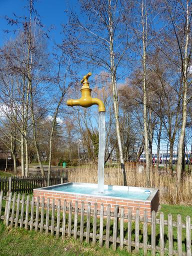 Keywords: faucet water column free standing floating optical deception yellow water water running artwork art object deception water marsh