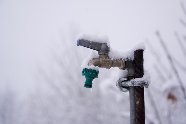Keywords: faucet water snow ice hahn water distributor garden winter cold frost