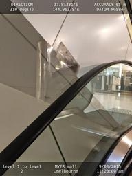 I hope an accident doesnt happen due to this faulty / damaged preventative device that prevents shoppers head from getting themselves killed by jamming their heads between the ceiling and the escalator.