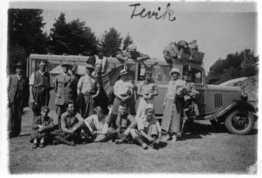 Keywords: blackandwhite monochrome outdoor black and white Ukens bilde er valgt ut av Mette Gismerøy Ekker, arkivar i Seksjon for kildeutgivelse. "Som medarbeider ved Riksarkivets Seksjon for kildeutgivelse har jeg vanligvis mer å gjøre med teksten og dens detaljer enn med fotografier. Men i arbeidet med utgivelsen av Nasjonal Samlings møteprotokoll ble jeg kjent med en rekke bilder fra NS fotosamling. Jeg har valgt et bilde som ikke ble med i utgaven. Det er et noe uskarpt bilde, men ikke mindre sjarmerende av den grunn. Bildet viser en glad gjeng fra Porsgrunn på vei med buss til NS' 3. riksmøte i Stavanger i juli 1935. Nå har de stoppet i Fevik. Det er en varm dag, de har begynt å kaste jakker og brette opp ermer. Kanskje har noen av dem badet, – det ser ut til å henge klær til tørk på bussen, både fra taket og på forskjermen. Bussen er en Chevrolet av god, gammel type, med bagasjen tidstypisk bundet fast på taket. Her er sommer, sol og avslappet stemning. I midten, bak gruppen, ser vi NS-flagget: gult kors på rød bunn. I 1935 var NS et lite og heller ubetydelig parti. Når jeg i dag ser på dette bildet og vet hvilken rolle NS fikk under krigen, får den solfylte julidagen en foruroligende og dyster undertone som bildet i seg selv ikke rommer. Det er denne dobbeltheten jeg finner så fascinerende med bildet av NS-medlemmenes stopp i Fevik en sommerdag i 1935." Arkivreferanse: PA-0781 NS fotosamling Fce4_471 Ukens bilde er valgt ut av Mette Gismerøy Ekker, arkivar i Seksjon for kildeutgivelse. "Som medarbeider ved Riksarkivets Seksjon for kildeutgivelse har jeg vanligvis mer å gjøre med teksten og dens detaljer enn med fotografier. Men i arbeidet med utgivelsen av Nasjonal Samlings møteprotokoll ble jeg kjent med en rekke bilder fra NS fotosamling. Jeg har valgt et bilde som ikke ble med i utgaven. Det er et noe uskarpt bilde, men ikke mindre sjarmerende av den grunn. Bildet viser en glad gjeng fra Porsgrunn på vei med buss til NS' 3. riksmøte i Stavanger i juli 1935. Nå har de stoppet i Fevik. Det er en varm dag, de har begynt å kaste jakker og brette opp ermer. Kanskje har noen av dem badet, – det ser ut til å henge klær til tørk på bussen, både fra taket og på forskjermen. Bussen er en Chevrolet av god, gammel type, med bagasjen tidstypisk bundet fast på taket. Her er sommer, sol og avslappet stemning. I midten, bak gruppen, ser vi NS-flagget: gult kors på rød bunn. I 1935 var NS et lite og heller ubetydelig parti. Når jeg i dag ser på dette bildet og vet hvilken rolle NS fikk under krigen, får den solfylte julidagen en foruroligende og dyster undertone som bildet i seg selv ikke rommer. Det er denne dobbeltheten jeg finner så fascinerende med bildet av NS-medlemmenes stopp i Fevik en sommerdag i 1935." Arkivreferanse: PA-0781 NS fotosamling Fce4_471 |