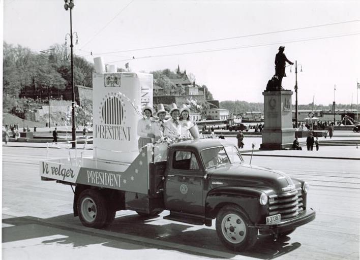 | Keywords: president sigaretter reklame teddy rådhusplassen oslo outdoor vehicle Vidar Øverland, seniorrådgiver i seksjon for privatarkiver, er mannen bak ukens bilde: Favorittbilde #4: Det er nok å ta vel hardt i å karakterisere dette fotografiet som mitt favorittbilde. Men motivet er interessant og ganske morsomt. Bildet er tatt i forbindelse med kampanje for NKL-sigaretten ”President” på Rådhusplassen i Oslo ca. 1950. Vi befinner oss altså i en tid da det fortsatt var relativt uskyldig og slett ikke helseskadelig å røyke. Bilens reklame, de unge kvinnenes klesdrakt samt sigarettpakkens utforming og navn leder straks tankene og drømmene i retning USA. Hvorfor NKL valgte å gi sigarettene navnet ”President” vites ikke, men det kan jo tenkes at selskapet har latt seg inspirere av LJ Tiedemanns suksess med sigarettmerket ”Teddy”, navngitt etter USAs president Theodore ”Teddy” Roosevelt. I 1914 overtok Coop NKL Julius Haugens Tobakksfabrikk på Rodeløkka i Oslo og etablerte NKLs Tobakkfabrikk i de samme lokalene i Marstrandsgaten 13. Sigarettmerket ”President” var på 1950-tallet en av bestselgerne til NKLs Tobakkfabrikk. I 1961 ble fabrikken solgt til Tiedemanns Tobaksfabrik. Tobakksreklame ble i Norge forbudt med lov i 1973 (trådte i kraft fra 1975). I mange år før forbudet, var tobakksreklame en viktig inntektskilde for bl.a. aviser og ukeblader. Det var ganske vanlig å benytte unge kvinner i reklame for tobakk, men mange husker sikkert også bildene av røykende idrettsfolk og skuespillere, - ja til og med små barn ble benyttet i reklamesammenheng. Fotografiet er hentet fra Riksarkivets privatarkiv 1394 Coop, NKL BA, eske Um 8. Vidar Øverland in the private archives section, show us his favorite photo: # 4: It is a bit exaggerated to characterize this photo as my favorite photo. But the motive is interesting and quite funny. The photo is taken in connection with a campaign for the NKL cigarette “President” outside the town hall in Oslo around 1950. We are thus in a time where it still was quite innocent and not at all damaging to the health to smoke. The car’s commercial, the young ladies’ outfit as well as the design of the cigarette pack and name, immediately lead our thoughts and dreams to the USA. Why NKL chose to give the cigarettes the name “President” is not known, but it is possible that the company has been inspired by LJ Tiedemann’s success with the cigarette brand “Teddy”, named after the US president Theodore “Teddy” Roosevelt. In 1914, Coop NKL took over Julius Hansen’s Tobakksfabrikk (tobacco factory) at Rodeløkka in Oslo, and established NKL’s Tobakkfabrikk on the same premises in Marstrandsgaten 13. In the 50s, the cigarette brand “President” was one of NKL Tobakksfarbrikk’s bestsellers. In 1961 the factory was sold to Tiedemanns Tobaksfabrik. Tobacco advertising was forbidden by law in Norway in 1973 (effective from 1975). In many years before the ban, tobacco advertising was an important source of income for newspapers and magazines, etc. It was quite usual to use young women in commercials for tobacco, but many probably also remember the photos of smoking athletes and actors – even small children were used in commercials! The photograph is from the private archive 1394 Coop, NKL BA, box Um 8. Vidar Øverland, seniorrådgiver i seksjon for privatarkiver, er mannen bak ukens bilde: Favorittbilde #4: Det er nok å ta vel hardt i å karakterisere dette fotografiet som mitt favorittbilde. Men motivet er interessant og ganske morsomt. Bildet er tatt i forbindelse med kampanje for NKL-sigaretten ”President” på Rådhusplassen i Oslo ca. 1950. Vi befinner oss altså i en tid da det fortsatt var relativt uskyldig og slett ikke helseskadelig å røyke. Bilens reklame, de unge kvinnenes klesdrakt samt sigarettpakkens utforming og navn leder straks tankene og drømmene i retning USA. Hvorfor NKL valgte å gi sigarettene navnet ”President” vites ikke, men det kan jo tenkes at selskapet har latt seg inspirere av LJ Tiedemanns suksess med sigarettmerket ”Teddy”, navngitt etter USAs president Theodore ”Teddy” Roosevelt. I 1914 overtok Coop NKL Julius Haugens Tobakksfabrikk på Rodeløkka i Oslo og etablerte NKLs Tobakkfabrikk i de samme lokalene i Marstrandsgaten 13. Sigarettmerket ”President” var på 1950-tallet en av bestselgerne til NKLs Tobakkfabrikk. I 1961 ble fabrikken solgt til Tiedemanns Tobaksfabrik. Tobakksreklame ble i Norge forbudt med lov i 1973 (trådte i kraft fra 1975). I mange år før forbudet, var tobakksreklame en viktig inntektskilde for bl.a. aviser og ukeblader. Det var ganske vanlig å benytte unge kvinner i reklame for tobakk, men mange husker sikkert også bildene av røykende idrettsfolk og skuespillere, - ja til og med små barn ble benyttet i reklamesammenheng. Fotografiet er hentet fra Riksarkivets privatarkiv 1394 Coop, NKL BA, eske Um 8. Vidar Øverland in the private archives section, show us his favorite photo: # 4: It is a bit exaggerated to characterize this photo as my favorite photo. But the motive is interesting and quite funny. The photo is taken in connection with a campaign for the NKL cigarette “President” outside the town hall in Oslo around 1950. We are thus in a time where it still was quite innocent and not at all damaging to the health to smoke. The car’s commercial, the young ladies’ outfit as well as the design of the cigarette pack and name, immediately lead our thoughts and dreams to the USA. Why NKL chose to give the cigarettes the name “President” is not known, but it is possible that the company has been inspired by LJ Tiedemann’s success with the cigarette brand “Teddy”, named after the US president Theodore “Teddy” Roosevelt. In 1914, Coop NKL took over Julius Hansen’s Tobakksfabrikk (tobacco factory) at Rodeløkka in Oslo, and established NKL’s Tobakkfabrikk on the same premises in Marstrandsgaten 13. In th