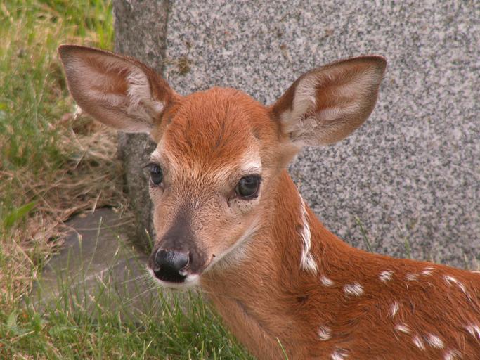 | Keywords: Fawn, Odocoileus virginianus, United Cemeteries, 2015-06-08. 04.jpg en A White-Tailed Deer Odocoileus virginianus fawn resting against a monument in the Rosemont Mt Hope Evergreen United Cemeteries Ross Township Allegheny County Pennsylvania 2015-06-08 13 55 24 own Cbaile19 other versions cc-zero Odocoileus virginianus juvenile Uploaded with UploadWizard | ||||