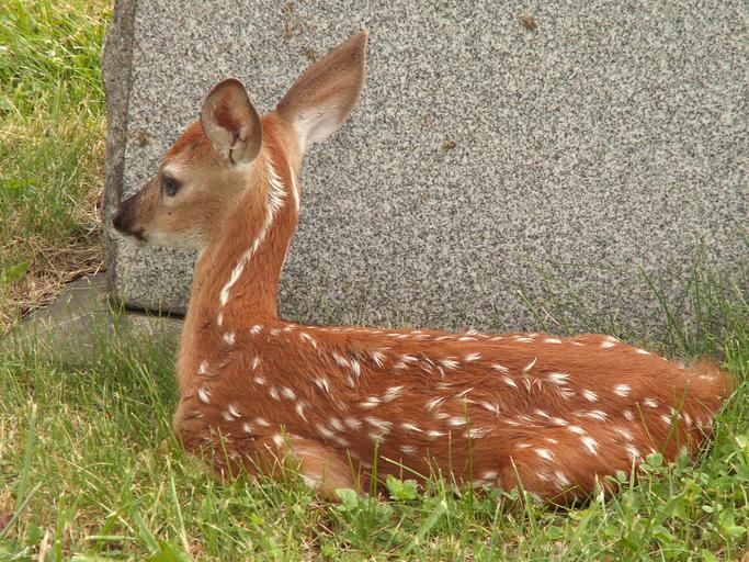 | Keywords: Fawn, Odocoileus virginianus, United Cemeteries, 2015-06-08. 06.jpg en A White-Tailed Deer Odocoileus virginianus fawn resting against a monument in the Rosemont Mt Hope Evergreen United Cemeteries Ross Township Allegheny County Pennsylvania 2015-06-08 13 54 16 own Cbaile19 other versions cc-zero Odocoileus virginianus juvenile Uploaded with UploadWizard | ||||