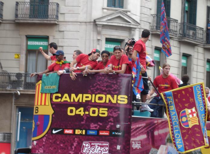 | Keywords: FC Barcelona - Celebración Champions 2005 (Rua por Barcelona) - 005.jpg Celebración del título de Liga de Primera División de España 2004-2005 por el FC Barcelona rua own 2005-10-16 Mutari 17 03 19 September 2007 UTC ImageNote 1 653 349 69 88 1500 1104 2 Deco ImageNoteEnd 1 ImageNote 2 718 360 69 97 1500 1104 2 Ronaldinho ImageNoteEnd 2 ImageNote 3 806 322 66 101 1500 1104 2 Edmilson ImageNoteEnd 3 ImageNote 4 390 354 69 92 1500 1104 2 Samuel Eto'o ImageNoteEnd 4 ImageNote 5 341 304 71 86 1500 1104 2 Giuly ImageNoteEnd 5 ImageNote 6 1155 450 66 94 1500 1104 2 Maxi López ImageNoteEnd 6 La Liga 2004-2005 celebration Samuel Eto'o Deco Ronaldinho José Edmílson Gomes Moraes Maxi López Ludovic Giuly Players of FC Barcelona 2004/2005 FC Barcelona flags Association football team buses in Spain Sports victory |