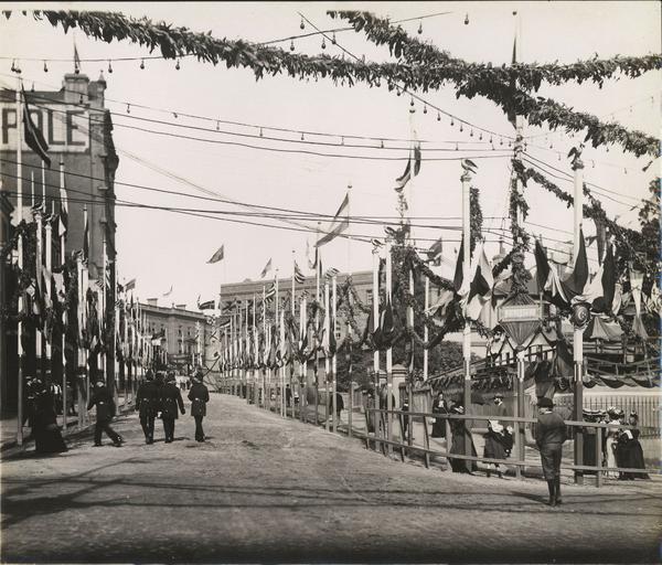 | Keywords: archives state records nsw staterecordsnsw newsouthwales blackandwhite federation decorations sydney people police children women policemen outdoor black and white Young Street, looking towards the corner of Bent and Bligh Streets. Federation celebrations, Sydney Dated: 1901 Digital ID: 4481_a026_000281 Rights: www.records.nsw.gov.au/about-us/rights-and-permissions We'd love to hear from you if you use our photos/documents. Many other photos in our collection are available to view and browse on our website using Photo Investigator. Young Street, looking towards the corner of Bent and Bligh Streets. Federation celebrations, Sydney Dated: 1901 Digital ID: 4481_a026_000281 Rights: www.records.nsw.gov.au/about-us/rights-and-permissions We'd love to hear from you if you use our photos/documents. Many other photos in our collection are available to view and browse on our website using Photo Investigator. |