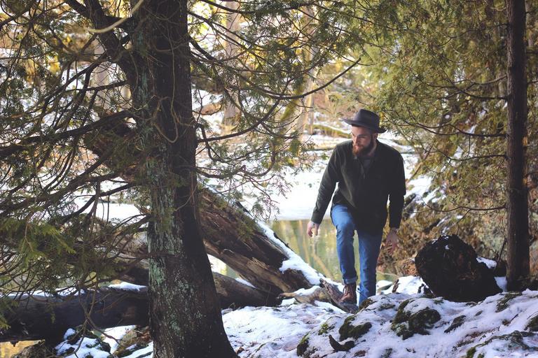 Keywords: fedora guy man forest woods nature snow winter river beard people