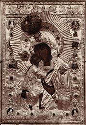 | Keywords: Fedorovskaya in riza.jpg Theotokos of St Theodore in riza Феодо овская икона Божией ате и в окладе http //www veinik by/photo/2464 htm photo 1910 Creator Sergey Prokudin-Gorsky PD-Russia PD-1923 Feodorovskaya original Riza of Marian icons in Russia Photo of Kostroma Governorate by Sergey Prokudin-Gorsky |