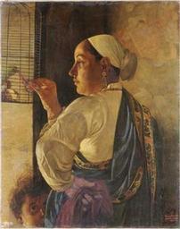 | Keywords: Feeding the Parrot by Pestonji Bomanji.jpg en Feeding the Parrot by Pestonji Bomanji 1851-1938 Bombay School Oil on canvas 1882 76 5 x 61 cm Chhatrapati Shivaji Maharaj Vastu Sangrahalaya Chhatrapati Shivaji Maharaj Vastu Sangrahalaya Pestonji Bomanji 1851-1938 1882 Paintings in the Chhatrapati Shivaji Maharaj Vastu Sangrahalaya Pestonji Bomanji Art of India in the Chhatrapati Shivaji Maharaj Vastu Sangrahalaya Unclear-PD-US-old-70 | ||||