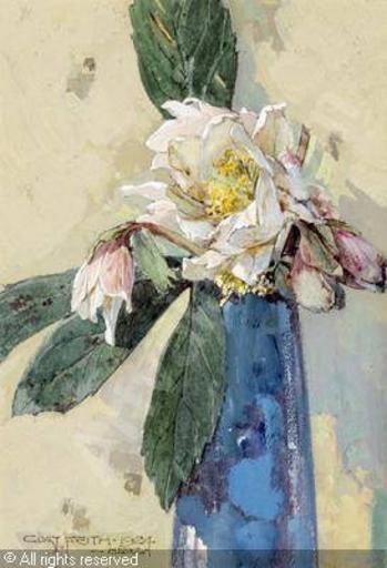 Keywords: FEITH Gustav, 1875-1951 (Austria). Schneerosen in blauer Vase. Watercol and gouache on paper. 1924. art-call Artistically