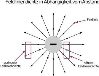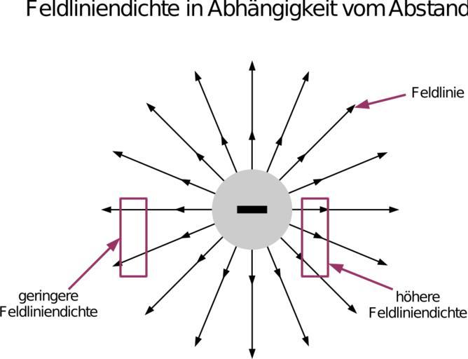 Keywords: Feldliniendichte und Abstand.svg Feldliniendichte in Abhängigkeit zum Abstand von der Oberfläche Own 2008-05-03 RobertKuhlmann Electromagnetic field Diagrams in German
