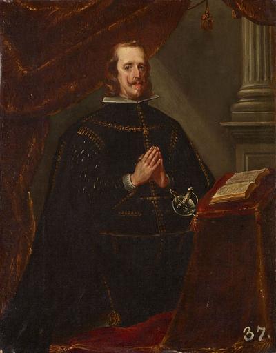 | Keywords: Felipe IV de España, orante (Monasterio de El Escorial).jpg Retrato del rey Felipe IV de España 1600-1665 que aparece en actitud orante y arrodillado en un reclinatorio circa 1658 1660 oil on canvas Size cm 41 53 Institution Monasterio de San Lorenzo El Escorial http //www patrimonionacional es/retratos/obras_principales htm object history exhibition history credit line accession number http //www patrimonionacional es/retratos/obras_principales htm PD-old-100 Portrait paintings of Philip IV of Spain Philip IV by Velazquez Circle of Diego Velázquez 17th-century portrait paintings in the monastery de El Escorial |