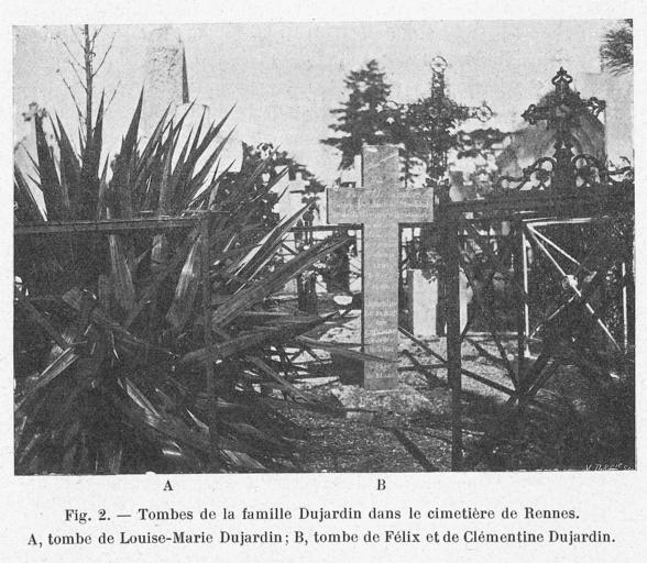 Keywords: Félix Dujardin - Tombe (1901).png en Félix Dujardin - his grave in Rennes France Photographed in 1901 1901 Archives de Parasitologie Volume 4 1901 Louis Joubin other versions Félix Dujardin 1811-1860 by Louis Joubin 1901 Archives de Parasitologie Vol 4 pdf PD-old-70-1923 Félix Dujardin Uploaded with UploadWizard Cemeteries in Rennes Black and white panoramic photographs Graves in Ille-et-Vilaine Cemetery crosses in Ille-et-Vilaine 1901 photographs 1901 in Bretagne Rennes in the 1900s |