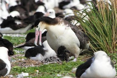 Keywords: Female Short-tailed Albatross and Chick.jpg en This is one of the first images of the female short-tailed albatross with her chick The chick is the first to be hatched outside of Japan As of 2010 the short-tailed albatross population is estimated to be 1 200 birds Of these the total number of breeding age birds is thought to be approximately 600 birds 2011-02-01 20 33 47 http //digitalmedia fws gov/cdm/singleitem/collection/natdiglib/id/12377/rec/9 Leary Pete PD-USGov Uploaded with UploadWizard Phoebastria albatrus |