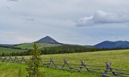 Keywords: fence meadow mountain outside wild scenery grass vista fencing
