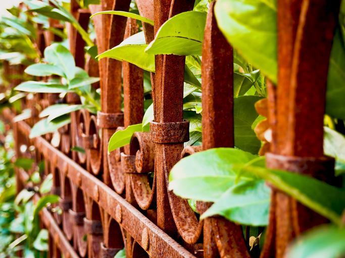 Keywords: fence stainless metal old rusty rusted garden fence iron garden plant close transience patina corrosion close up