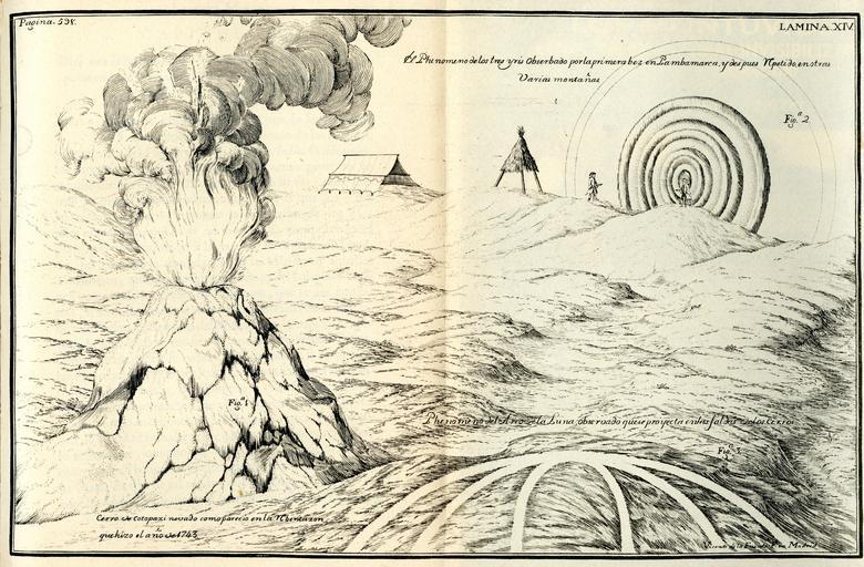 | Keywords: Fenónemos sucedidos en las elevaciones montañosas del Corregimiento de Latacunga - AHG.jpg es De Ulloa Antonio y Jorge Juan Relación Histórica del Viaje a la América Meridional hecho de Orden de Su Majestad Católica para medir algunos Grados de Meridiano Terrestre y venir por ellos en conocimiento de la verdadera Figura y Magnitud de la Tierra con otras varias Observaciones Astronómicas y Físicas Por Don Jorge Juan Comendador de Aliaga en la Orden de San Juan Socio correspondiente de la Real Academia de las Ciencias de París; y Don Antonio de Ulloa de la Real Sociedad de Londres ambos por Capitanes de Fragata de la Real Armada Primera Parte / Tomo I Impresa por la Orden del Rey Nuestro Señor en Madrid por Antonio Marín Año de MCDDXLVIII 1748 Diapositiva de Consulta y acceso publico cuya información fue investigada de un libro y/o ejemplar de revisión custodiado en los Fondos Bibliográficos Sección Siglo XVIII o Etapa Colonial del Archivo Histórico del Guayas; Guayaquil Ecuador 2012-05-15 own Jojagal cc-zero 1748 Uploaded with UploadWizard History of Ecuador Royal Audience of Quito Spanish Empire Latacunga Cotopaxi Province Jorge Juan Antonio de Ulloa Cotopaxi in art Diagrams of volcanoes |