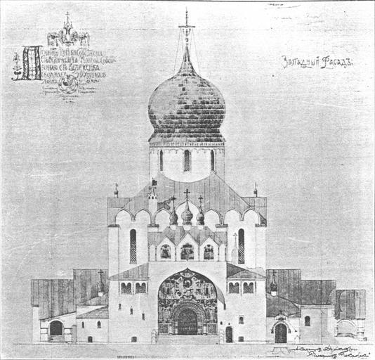 | Keywords: Feodorovsky Cathedral Western front.JPG en Feodorovsky Cathedral in Tsarskoye Selo The western front ru Фёдо овский собо в Ца ском Селе Западный фасад Це ковь Собственного Его Величества конвоя и Собственного Его Величества Сводного пехотного полка в Ца ском Селе П оекты аз езы планы // Ежегодник общества а хитекто ов-художников 1910 В 5 С 109 112 V A Pokrovsky 1910 PD-old Project of Feodorovsky Cathedral in Tsarskoye Selo | ||||