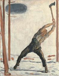 | Keywords: Ferdinand Hodler - Der Holzfäller, 1910.jpg Artwork Creator Ferdinand Hodler 1910 oil canvas cm 130 101 accession number object history credit line Provenance Sammlung Josef Müller Solothurn Privatbesitz Schweiz unten rechts signiert 'F Hodler' und datiert '1910' http //www christies com/lotfinder/LotDetailsPrintable aspx intObjectID 4447145 Christie's Christie's online 4447145 PD-old-auto 1918 Der Holzfäller by Ferdinand Hodler | ||||