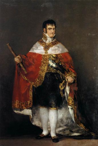 | Keywords: Ferdinand VII of Spain in his robes of state by Goya.jpg Francisco_de_Goya_y_Lucientes_070 jpg Artwork Creator Francisco de Goya y Lucientes 1814 Oil on canvas size cm 212 146 Institution Prado object history credit line accession number WGA link 10083 http //www wga hu/art/g/goya/7/716goya jpg http //www wga hu/html/g/goya/7/716goya html painting portrait Spanish 1801-1850 PD-old-100 WGA form painting WGA type portrait WGA School Spanish WGA time period 1801-1850 Ferdinand VII in Coronation Robes Goya c 1815 |