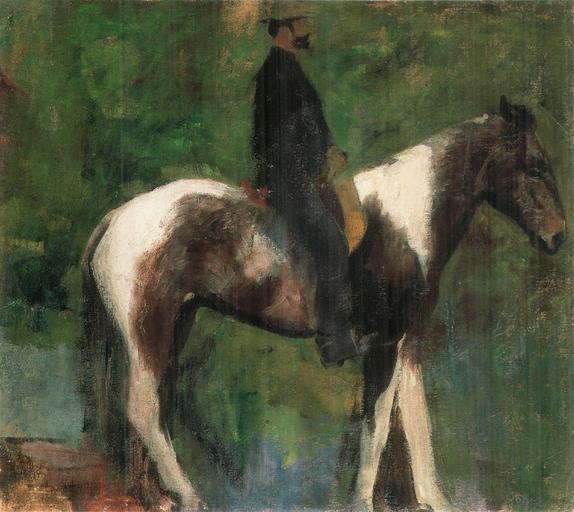 Keywords: Ferenczy Equestrian 1898.jpg Artwork Creator Károly Ferenczy 1898 Oil on canvas Size cm 69 61 Institution Rippl-Rónai Museum Kaposvár object history credit line accession number 55 616 Horváth János szerk A Rippl-Rónai Ödön Gyűjtemény Kaposvár 2002 ISBN 963 7212 32 9 p 124 http //muzeum arcanum hu/kiadvanyok/opt/a110625 htm v pdf a start_f Magyar Digitális Múzeumi Könyvtár PD-old-auto 1917 Paintings by Károly Ferenczy in the Rippl-Rónai Museum Kaposvár 1898 paintings in Hungary