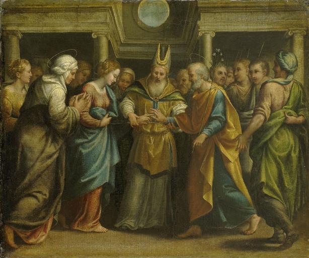 Keywords: Ferrara - Het huwelijk van Maria met Jozef.jpg Ferrara LangSwitch The Marriage of Mary and Joseph Het huwelijk van Maria met Jozef 1525 - 1549 oil canvas cm 49 5 58 5 Museum Rijksmuseum SK-A-109 Object history ProvenanceEvent 1801 purchase credit line www rijksmuseum nl http //www rijksmuseum nl/ lang en Home https //www rijksmuseum nl/collectie/SK-A-109 Info https //www rijksmuseum nl/assetimage2 jsp id SK-A-109 Pic PD-old-100 Italian Renaissance paintings in the Rijksmuseum Amsterdam Anonymous Ferrara Files by User Ophelia2 Paintings of the Marriage of the Virgin |