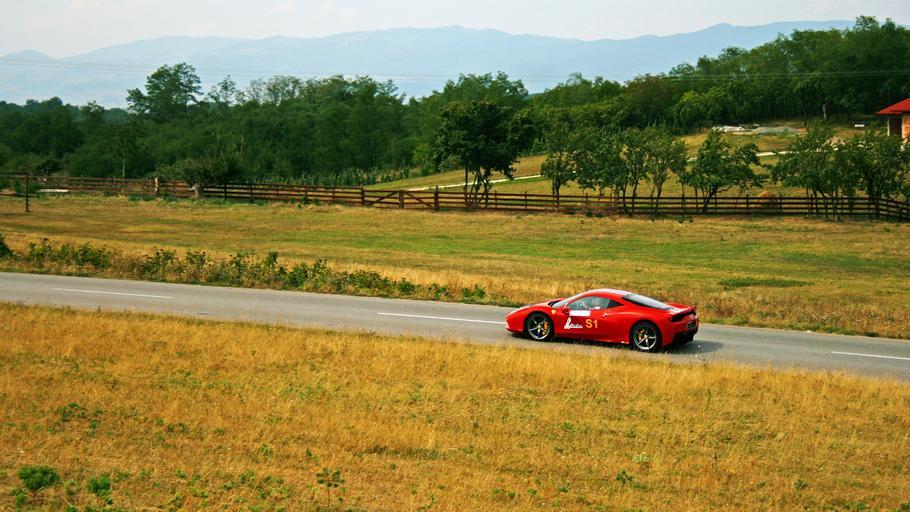 Keywords: ferrari race car racing landscape hill hill climb road countryside