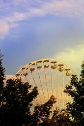 Keywords: ferris wheel theme park pleasure folk festival ride fun huge leisure fair sunset lighting