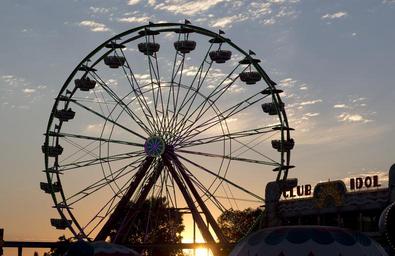 Keywords: ferris wheel thrilling fun entertainment sunset dusk state fair california recreation excitement joy fairground high ride outdoors attraction evening silhouette