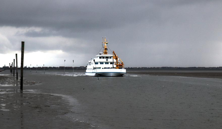 Keywords: ferry ship north sea island baltrum sea gateway port fairway clouds dark