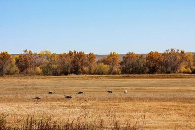 Keywords: Sandhill Cranes in the field just South of Dabbler Deck. Jessie Jobs/USFWS