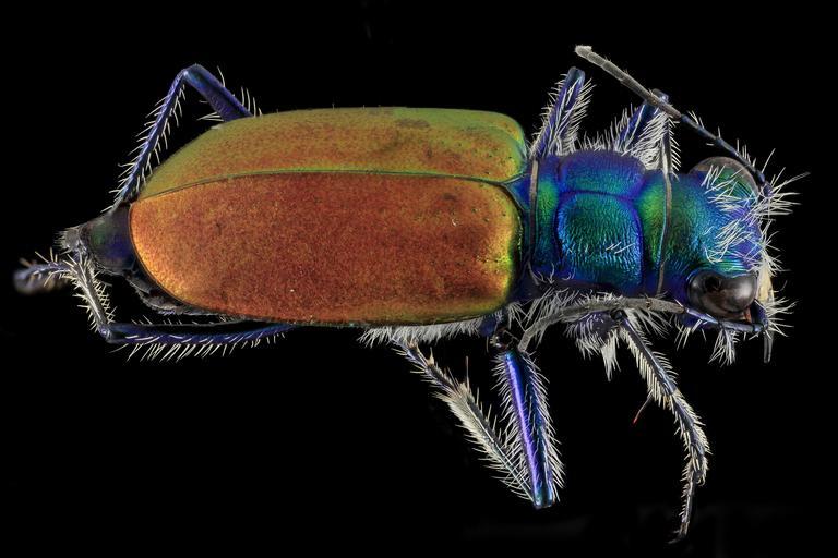 Keywords: bug bugs insect insects animal animals animalia arthropod arthropods arthropoda insecta beetle beetles coleoptera ground beetle groundbeetle adephaga ground beetles groundbeetles carabidae tiger beetle tigerbeetle tiger beetles tigerbeetles cicindelinae flashy tiger beetles flashytigerbeetles cicindelini common tiger beetles commontigerbeetles cicindela cicindela scutellaris cicindelascutellaris festive tiger beetle festivetigerbeetle taxonomy:binomial=cicindela scutellaris taxonomy:binomial=cicindelascutellaris usgs biml droege usgsbiml black background surreal bright Cicindela scutellaris - the Festive Tiger Beetle, found on top of a butte in Badlands National Park that had ancient windblown sand at its crest, very different from the rest of the gumbo soils of the park. Here this sand specialist can build its long burrows. Experimenting with using Black Velvet as a background ... seems to gain me a few more black pixes as compared to Black Felt, also used a white card to reflect light back up on the underside of the specimen. Canon Mark II 5D, Zerene Stacker, 65mm Canon MP-E 1-5X macro lens, Twin Macro Flash, F5.0, ISO 100, Shutter Speed 200, link to a .pdf of our set up is located in our profil Cicindela scutellaris - the Festive Tiger Beetle, found on top of a butte in Badlands National Park that had ancient windblown sand at its crest, very different from the rest of the gumbo soils of the park. Here this sand specialist can build its long burrows. Experimenting with using Black Velvet as a background ... seems to gain me a few more black pixes as compared to Black Felt, also used a white card to reflect light back up on the underside of the specimen. Canon Mark II 5D, Zerene Stacker, 65mm Canon MP-E 1-5X macro lens, Twin Macro Flash, F5.0, ISO 100, Shutter Speed 200, link to a .pdf of our set up is located in our profil