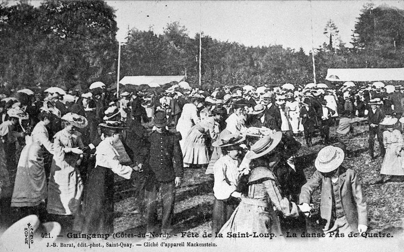 | Keywords: Fête de la Saint Loup - Le Pas de quatre 03.jpg fr La danse Pas de quatre lors de la fête de la Saint Loup à Guingamp 1900 http //mediatheque dastum net/GEIDEFile/PHOT58829 jpg Archive 251337907951 File PHOT58829_jpg J -B Barat other versions PD-old-70-1923 Festival de la Saint-Loup Uploaded with UploadWizard Postcards of Côtes-d'Armor 1900s postcards of Bretagne Dances of Brittany | ||||