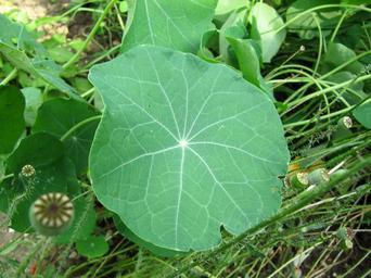 Keywords: Feuille verte ronde.jpg fr parc floral 2010-07-11 own Dinkum Tropaeolum majus Leaf veins cc-zero Uploaded with UploadWizard