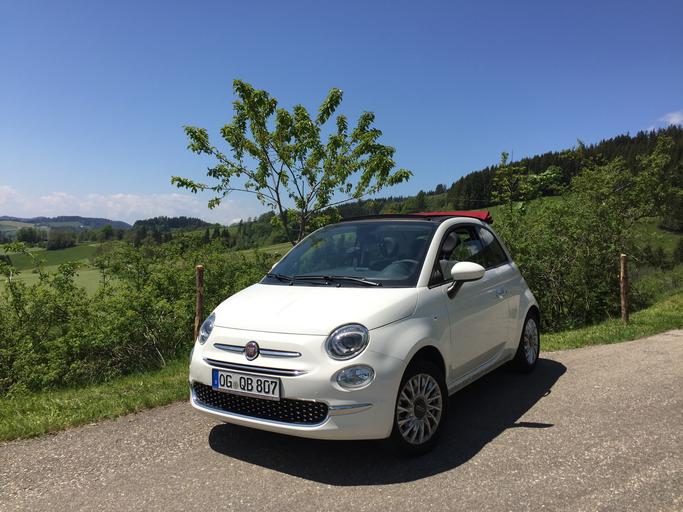 Keywords: fiat 500 convertible white city car nostalgia italy black forest snogging ball modern cute charming emotional