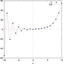| Keywords: Fibonacci continuous.png Plot of Fibonacci number function of a continuous variable own Fredrik Johansson Maxima source code xy makelist n fib n n -10 10 ; f n realpart phi n- - phi -n /sqrt 5 ; plot2d discrete xy f x x -10 10 style points 3 1 lines 1 2 legend f_x f x gnuplot_preamble set size ratio 1; set zeroaxis; nticks 100 gnuplot_term ps Fibonacci numbers Special functions |