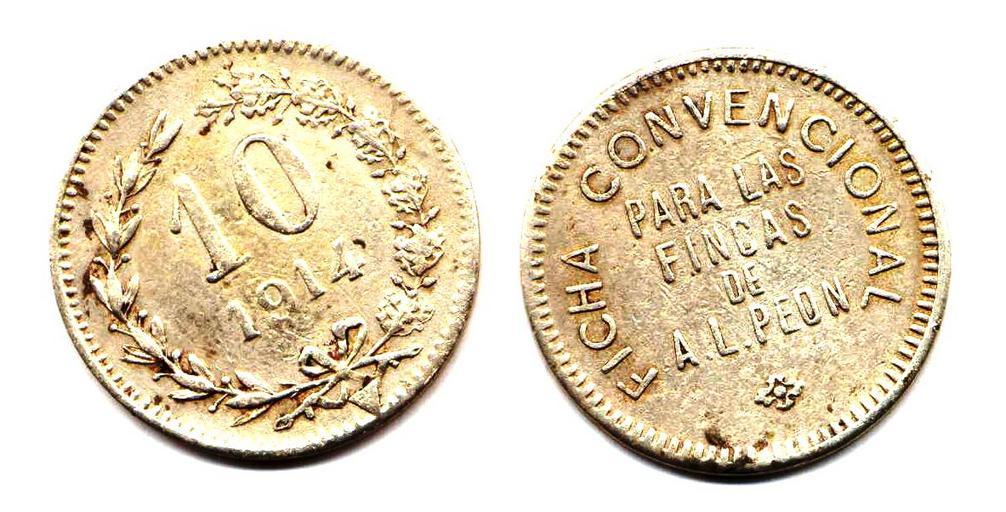 | Keywords: Ficha por $ 0.10 de las fincas de Agusto L. Peón de 1914, Yucatán (01)(anverso y reverso).jpg es Ficha por 0 10 de las fincas de Agusto L Peón de 1914 Yucatán 2013-08-06 12 59 51 own Inri PD-Mexico cc-zero Coins of Mexico Uploaded with UploadWizard |