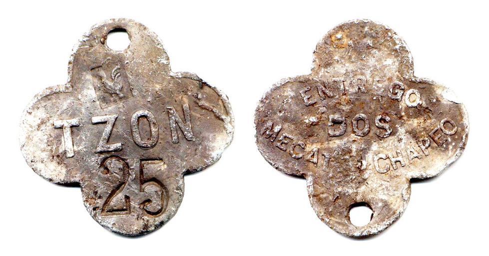 | Keywords: Ficha por 2 Mecates de Chapeo de la Hacienda San Francisco Dzon, Yucatán (01)(anverso y reverso).jpg es Ficha por 2 Mecates de Chapeo de la Hacienda San Francisco Dzon Yucatán 2014-06-24 11 39 54 own Inri PD-Mexico cc-zero Uploaded with UploadWizard Coins of Mexico |