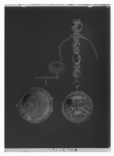 Keywords: Fickur, J. Bellete, London 1700-1701 - Livrustkammaren - 26772-negative.tif Fickur av guld s k montre à guichet titthålsur Tim- och minutangivelse sker genom två fasta visare och två svängda öppningar täckta av två blånerade och förgyllda skivor med signering BELLETE respektive LONDON Bakre verkbotten watch cock med graverad signatur två rader J Bellette // London Till höger liten tavla av silver med gradering 1-6 med kvarts- och halvtimmesmarkeringar Däröver en rund genombruten platta från överkanten till strax under mitten Därpå Karl XII s krönta namnchiffer omgivet på vardera sidan de svenska tre kronorna Längs kanten dedikation CAROLUS DUODECIMUS VIVAT FLOREAT TRIUMPHAT Nertill två sammanbundna palmkvistar förbundna med cirkelsegment till nederkanten Därpå rankverk och trofégrupp med antikt harnesk i mitten kanon fanor trumma mm <br/>På inre boetten engelska guldstämplar för 1700-1701 Leopard's head och Lion passant samt I W original caption Stölden på Livrustkammaren 1968 1701 gold - enamel size mm 57 m trycke size mm 48 size mm 32 g 121 LRK Statens historiska museum Wilhelm III av England Storbritannien kung 1650-1702 Haag Holland Ulrika Eleonora av Sverige Karl XII av Sverige Kunglig tid Kunglig tid 1999 Tidens Form Nationalmuseum 2008 C spegelmonogram Karl XII av Sverige I W anonym guld- och silversmed C spegelmonogram Karl XII av Sverige I W anonym guld- och silversmed place of origin London original filename LN_B08013_010893 55528 inventory number LRK 18993 26772 CC0 Fickur J Bellete London 1700-1701 - Livrustkammaren - 26772 tif <gallery caption Different images of same object > File Fickur J Bellete London 1700-1701 - Livrustkammaren - 77959 tif File Fickur J Bellete London 1700-1701 - Livrustkammaren - 915 tif </gallery> |