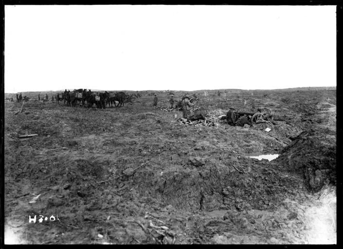 Keywords: blackandwhite monochrome photo border outdoor black and white General view of a muddy battleground with New Zealand artillery guns firing from shell holes on the Ypres Salient during World War I. Mules can be seen in the background carrying ammunition. Photograph taken at Kansas Farm on 12 October 1917 by Henry Armytage Sanders. Inscriptions: Inscribed - Photographer's title on negative -bottom left: H300. Quantity: 1 b&w original negative(s). Physical Description: Dry plate glass negative 4.75 x 6.5 inches Field guns firing from shell holes at Kansas Farm during World War I. Royal New Zealand Returned and Services' Association :New Zealand official negatives, World War 1914-1918. Ref: 1/2-012943-G. Alexander Turnbull Library, Wellington, New Zealand. natlib.govt.nz/records/22372040 General view of a muddy battleground with New Zealand artillery guns firing from shell holes on the Ypres Salient during World War I. Mules can be seen in the background carrying ammunition. Photograph taken at Kansas Farm on 12 October 1917 by Henry Armytage Sanders. Inscriptions: Inscribed - Photographer's title on negative -bottom left: H300. Quantity: 1 b&w original negative(s). Physical Description: Dry plate glass negative 4.75 x 6.5 inches Field guns firing from shell holes at Kansas Farm during World War I. Royal New Zealand Returned and Services' Association :New Zealand official negatives, World War 1914-1918. Ref: 1/2-012943-G. Alexander Turnbull Library, Wellington, New Zealand. natlib.govt.nz/records/22372040 |