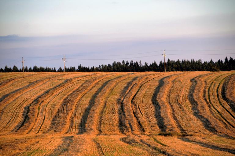 Keywords: field harvested the undulating after the harvest striped stripes landscape sunset evening harvest