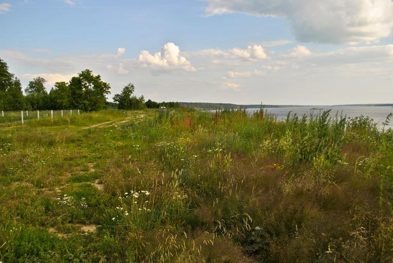 Keywords: field meadow nature beautiful blossom wild flowers blooming summer sky open air blue sky white clouds river